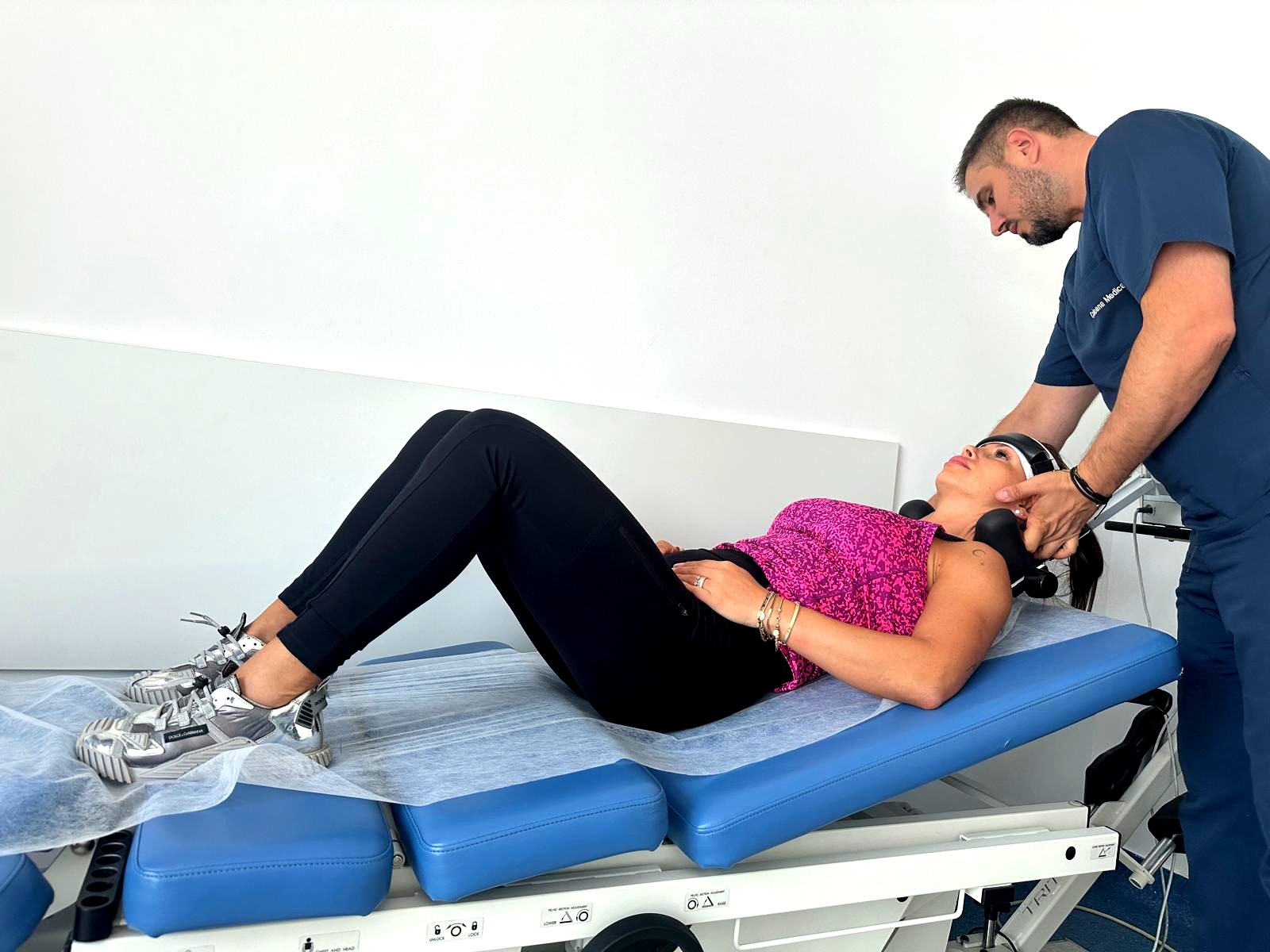 Decompresia vertebrală cervicală constă în tracțiunea tridimensională a capului către în ax, realizată dintr-o poziție de ușoară flexie, obținând astfel mărirea spațiului dintre două vertebre vecine și, deci, relaxarea mușchilor și a tendoanelor. Decompresia vertebrală se realizează cu ajutorul unui dispozitiv special, sigur, și care garantează rezultate optime, post-tratament.